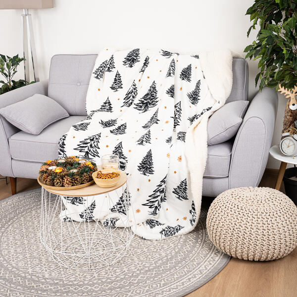 AFrosted Trees báránybőr takaróa 4Home márkától varázslatos téli hangulatot és kellemes meleget varázsol otthonába minden pillanatban. A fehér alapot fekete fák díszítik, apró arany csillagokkal és hópelyhekkel kiegészítve , amelyek egyszerre elegánsak és játékosak . Kialakításának köszönhetően a takaró nemcsak a téli időszakra alkalmas, hanem stílusos dekorációként is modern és klasszikus belső terekben . A felső oldala finom mikroszálas anyagból készült, részletes nyomtatással, amely kellemes tapintású, puha és luxus hatást kelt. A belső oldala puha poliészter szálas báránybőrből készült, amely megbízhatóan melegen tart és maximális kényelmet biztosít a leghidegebb estéken is. A takaró könnyű és puha, ideális filmnézéshez, könyvolvasáshoz vagy csak egy kellemes teázáshoz. Az OEKO-TEX Standard 100 tanúsítvány garantálja az anyag egészségügyi biztonságát. A karbantartása egyszerű – 40 °C-on mosható, gyorsan szárad és nem igényel vasalást. A puhaság és a hosszú élettartam megőrzése érdekében nem ajánlott szárítógépben szárítani. 150 × 200 cm-es méretének köszönhetően elegendő helyet biztosít felnőttek és gyermekek kényelmes használatához. A termék fő előnyei