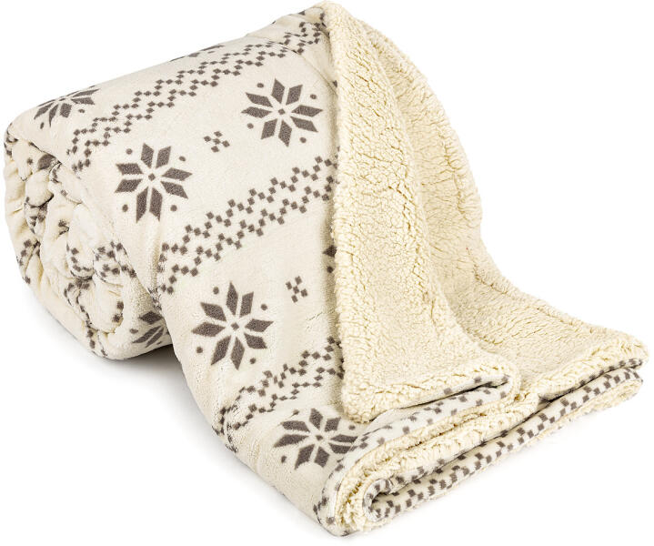 A 4Home márka Nordic gyapjú hatású plédje a kényelem, az elegancia és a meleg otthon megtestesítője . Első pillantásra a finom skandináv mintázat ragadja meg a figyelmet, amely természetes és otthonos hatást kelt. Ez a pléd a skandináv lakberendezési stílus ihlette nyugalom és kiegyensúlyozottság érzetét kelti a belső térben. A másik oldalon puha bézs gyapjú hatású anyag található, amely kellemes meleget biztosít és pihenésre csábít a hideg estéken.