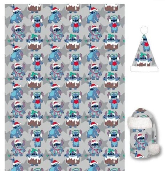 Aymex Disney Lilo és Stitch, A csillagkutya Grey karácsonyi flanel takaró és sapka szett