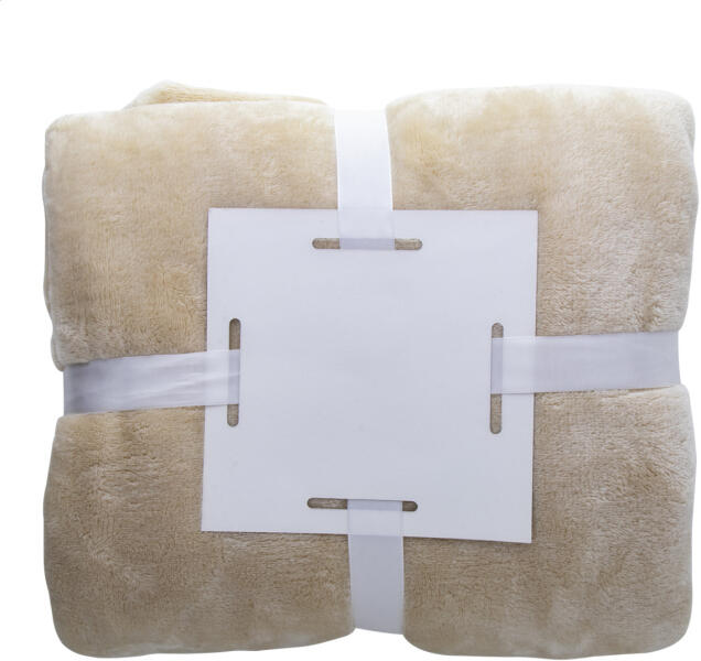 Flanel takaró, 280 g/m2 Szalaggal átkötve, nyomtatható papírkártyával szállítjuk.