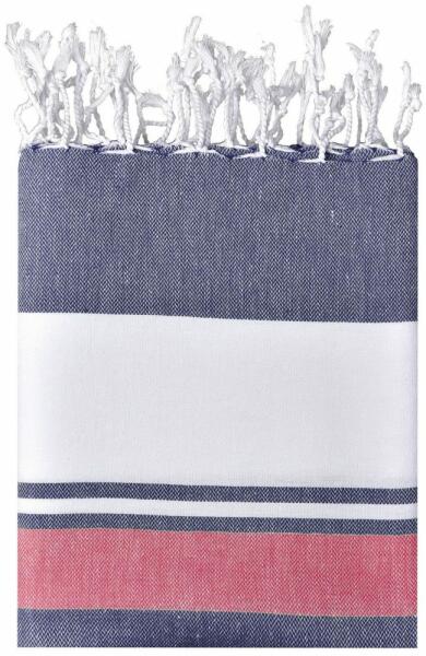 Kiváló minőségű pamut takaró, stílusos csíkos kivitelben. Használható takaróként a strandon és más szabadtéri tevékenységekhez is kiváló választás. Csomózott rojtok díszítik, 100% pamutból készült, súlya 160 g / m2.