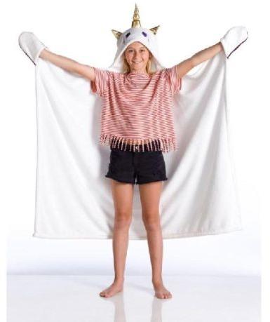 A Kanguru Unicornis köpeny egy puha, meleg takaró csuklyával és kesztyűkkel