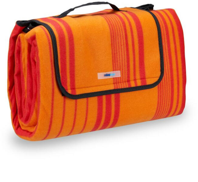 Relaxdays Piknik takaró 200x200 cm narancssárga-piros csíkos 10025989