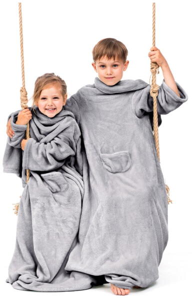 Restilo Lazykids szürke gyermek TV-nézős takaró ujjakkal - DecoKing