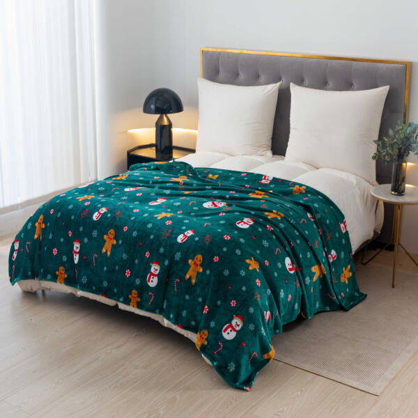 SNOWMAN AND GINGERBREAD zöld karácsonyi mikroplüss pléd Méret: 160 x 200 cm