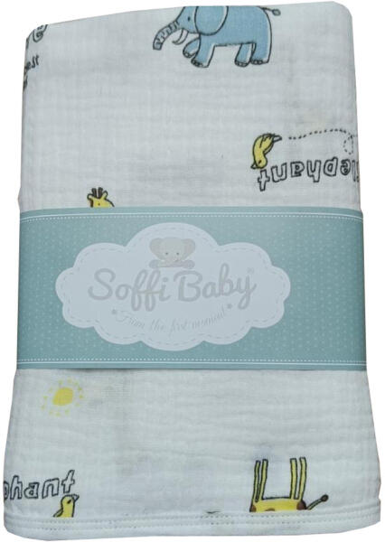 Soffi Baby takaró muszlin dupla elefánt és zsiráf 70x90cm