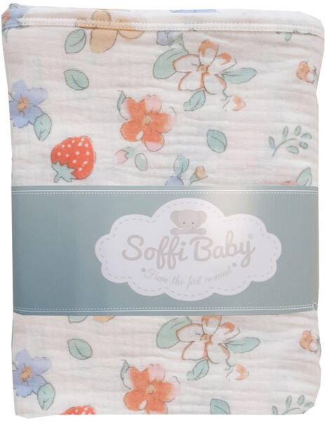 Soffi Baby kétrétegű muszlin takaró ultra puha, könnyű mintás anyagból. Ideális otthon és úton egyaránt. - ideális otthon és úton egyaránt. - kétrétegű muszlin takaró. - könnyű és puha. Újszülött kortól ajánlott. Mérete: 70x90cm Anyagösszetétel: 100% pamut