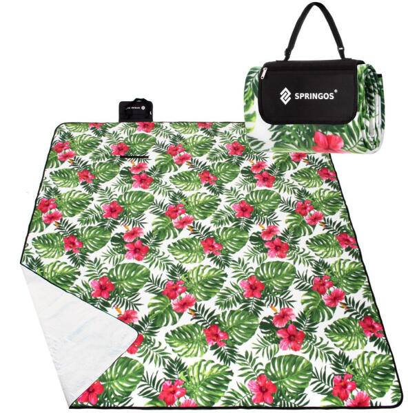 Springos Piknik takaró, virágmintás, 200x200 cm-es piknik pléd (PM019)