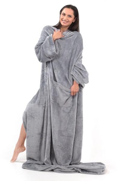 Lazy Takaró Ujjakkal és Zsebekkel - A tökéletes kényelem otthon ? Élvezd a maximális kényelmet és szabadságot a Lazy takaróval, mely ujjakkal és zsebekkel lett ellátva! Tökéletes választás a hideg estékre, amikor bekuckóznál egy jó könyvvel vagy filmet néznél. A puha és meleg anyagnak köszönhetően garantált a pihentető kikapcsolódás. Főbb jellemzők: ? Méret: 170x200 cm - Ideális méret a teljes test lefedéséhez. ? Anyag: 100% poliészter (240 g/m2) - Tartós és könnyen kezelhető. ?️ Ujjak: Szabad mozgást biztosít, így kényelmesen használhatod a telefonod, olvashatsz vagy ehetsz. ポケット Zsebek: Praktikus zsebek a távirányító, telefon vagy más apróságok tárolására. ? Szín: Elegáns szürke - Bármely otthonba tökéletesen illeszkedik. ✅ OEKO-TEX tanúsítvány: Biztonságos és bőrbarát anyagokból készült. Kezelési útmutató: Mosás: Mosógépben mosható maximum 40°C-on, kímélő programmal. Szárítás: Ne szárítsd szárítógépben! Vasalás: Ne vasald! Fehérítés: Ne fehérítsd! Vegytisztítás: Nem tisztítható vegyileg!Ez a takaró nem csak egy egyszerű takaró, hanem egy élmény. Kényeztesd magad vagy ajándékozd meg szeretteidet ezzel a praktikus és stílusos darabbal! ?