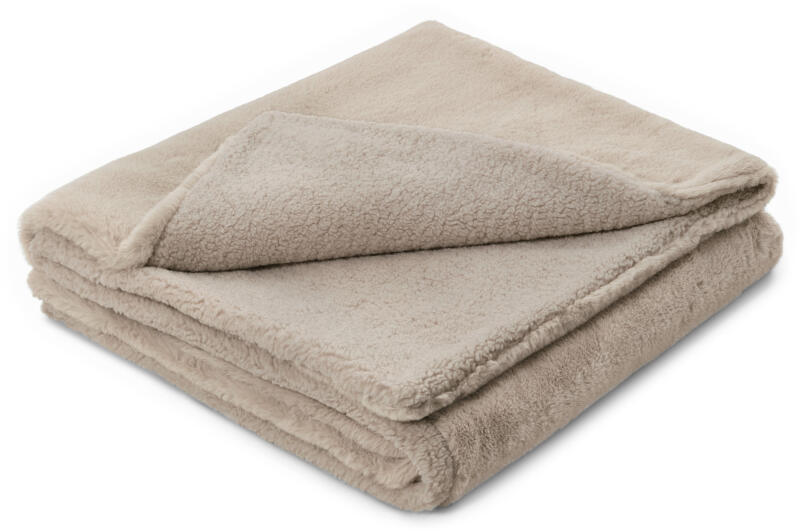 Puha takaró, bézs, 130x170 cm Szín: Bézs Anyag: 100% poliészter Méretek: Kb. 130 x 170 cm Súly: Kb. 390 g Rendkívül bársonyos és puhaA színén sherpa műszőrmeA fonáján rövid szálú plüssKb. 130 x 170 cm