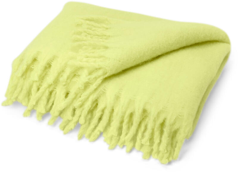 Takaró, lime, 130 x 150 cm Szín: Lime Anyag: 100% poliészter Méretek: Kb. 130 x 150 cm Hosszú rojtok, egyenként: kb. 8 cm Tavaszias hangulatúRojtokkal a rövidebbik oldalain Stílusos színárnyalatot biztosítSokoldalúan használható: takaróként az ágyon vagy a kanapén, a fotelen és társaikonKellemesen puha és melegBolyhos anyag