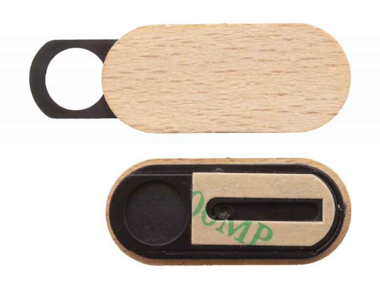 Webkamera kitakaró fa borítással, csúsztatható fedővel és öntapadós hátlappal.